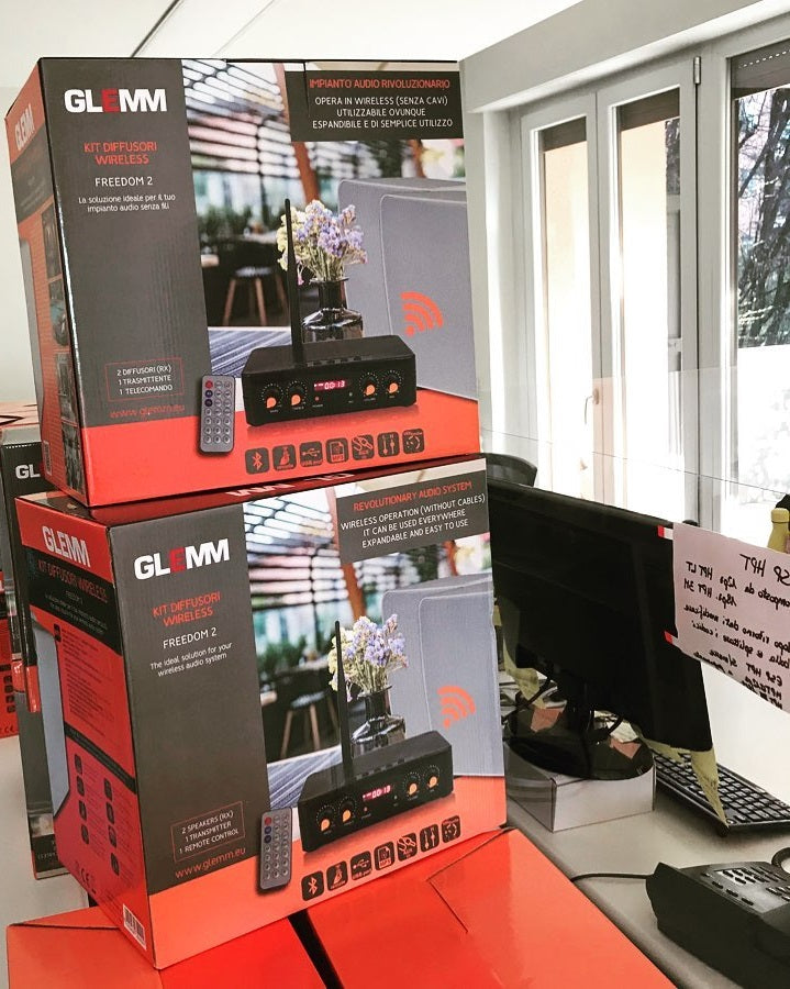 Sastoji se od 2 zvučnika s odvojenom kontrolom glasnoće i odašiljačke jedinice s radiom, Mp3, bluetoothom i utičnicom za mikrofon. Samo spojite zvučnike na zajedničku električnu utičnicu kako biste primili signal s odašiljača u rasponu od 20 metara. Zvučnici su potpuno vodootporni i pogodni i za postavljanje na otvorenom. Mogu se objesiti na zid izravno ili pomoću priloženog podesivog nosača. Njihova najveća snaga je 50W svaki. Odašiljač vam omogućuje podešavanje glasnoće svih zvučnika (uključujući sve naknadno kupljene) zasebnim upravljanjem glasnoćom mikrofona te visokim i niskim tonovima. Ima klasične tipke za reprodukciju MP3 pjesama pročitanih s USB stickova s funkcijom automatskog ponavljanja. Tu je i utičnica za vanjski signal.