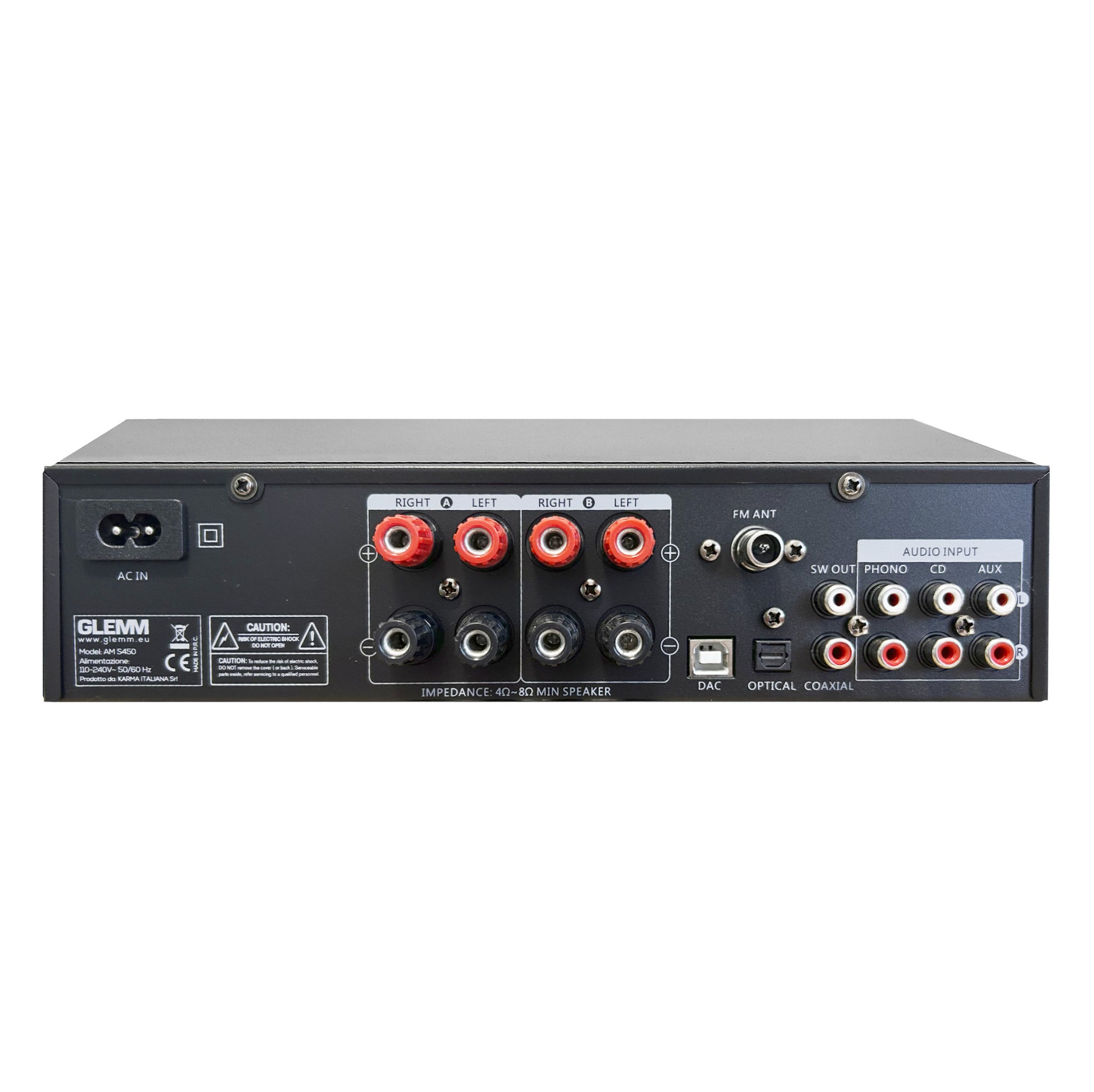 Stražnji ulazi: 2 linijska RCA ulaza, gramofonski ulaz, optička i koaksijalna utičnica te DAC priključak za povezivanje s računalom.