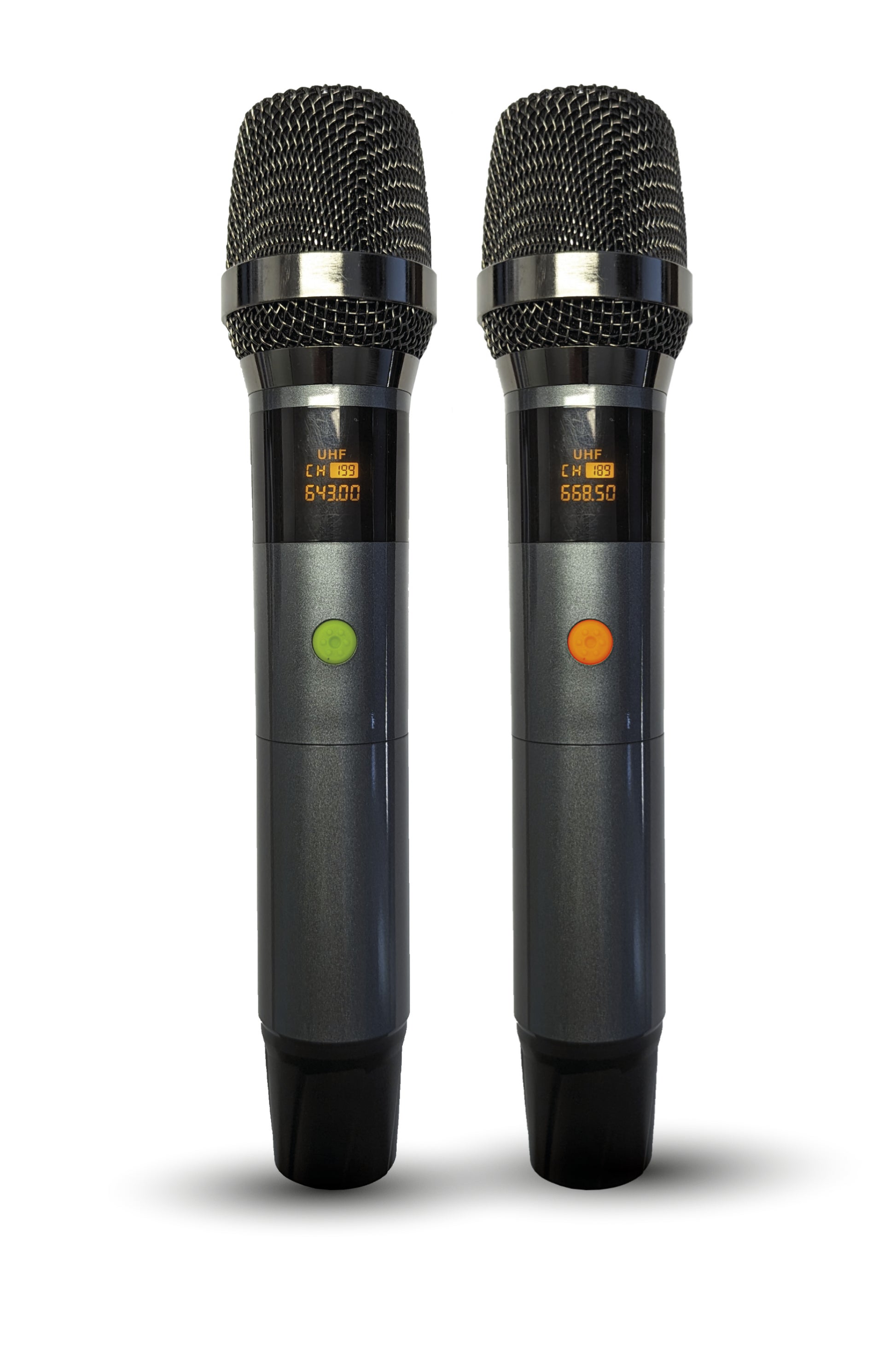 Profesionalni električni zvučnik s dvostrukim UHF mikrofonom i daljinskim upravljačem. Ugrađena baterija može se puniti iz kućne utičnice ili na 12V. Na panel je moguće spojiti žičani mikrofon ili glazbeni instrument, putem kombiniranih XLR - 6,3mm konektora.