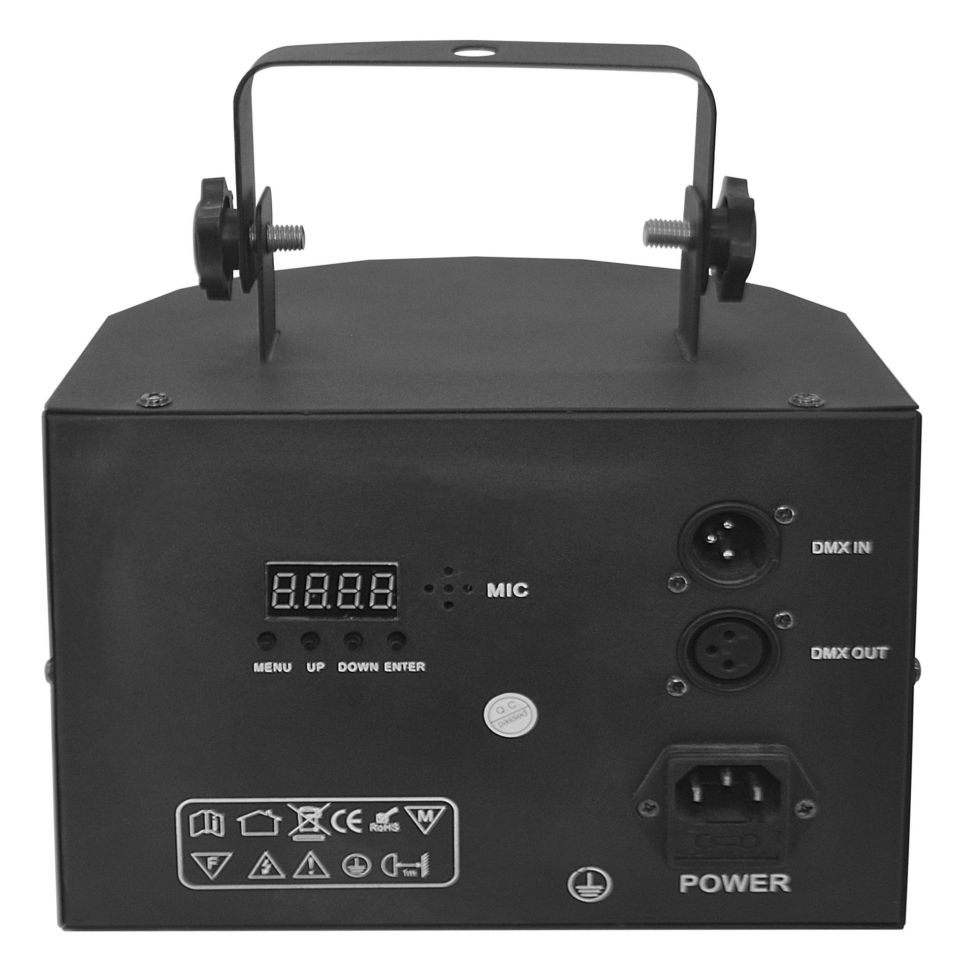 Svjetlosni efekt koji sadrži 4 UV i stroboskopska efekta, 1 efekt vodenog vala s 5W LED diodama i loptasti svjetlosni efekt koji pokreće 6 x 3W RGBW LED dioda. Tipka na stražnjoj strani omogućuje odabir načina rada (automatski/zvuk). Također uključuje ventilator za hlađenje i nosač za montažu na postolje. Postavke je moguće mijenjati iz daljine zahvaljujući uključenom infracrvenom daljinskom upravljaču.