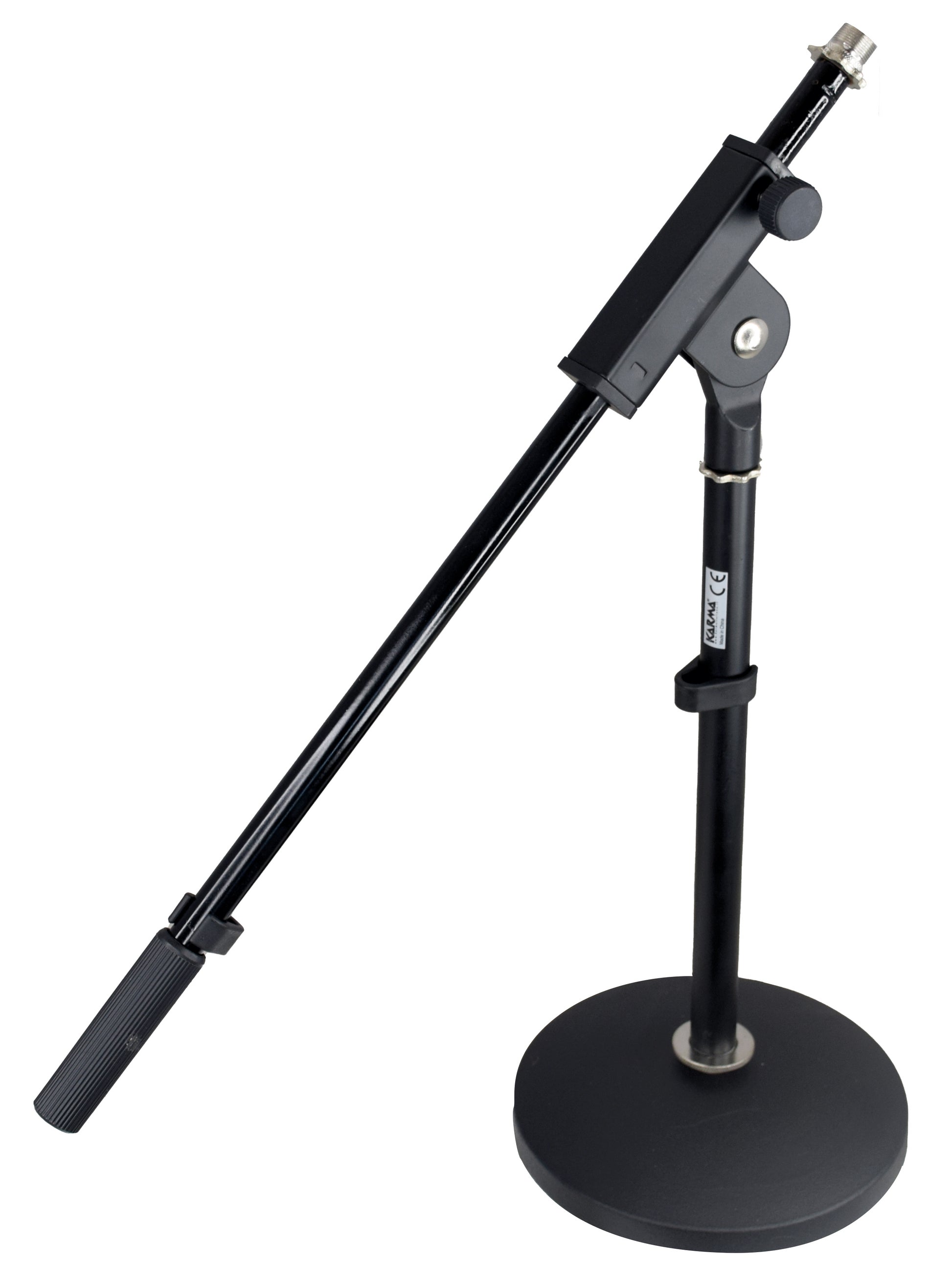 Opremljen stabilnom kružnom metalnom bazom i vodoravnom okretnom rukom od 50 cm. Opremljen prstenovima za ulazak kabela i konektorom za nosače mikrofona.